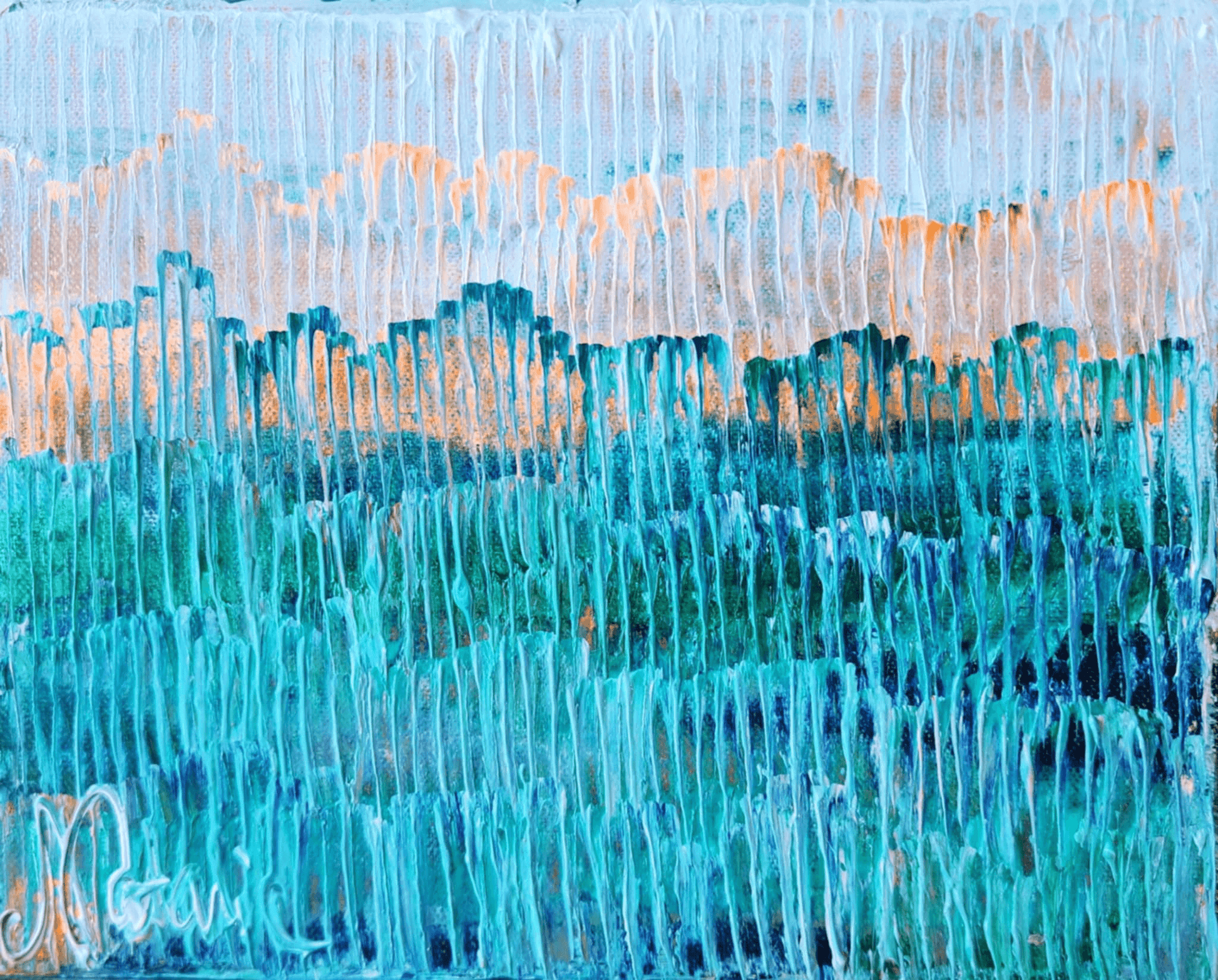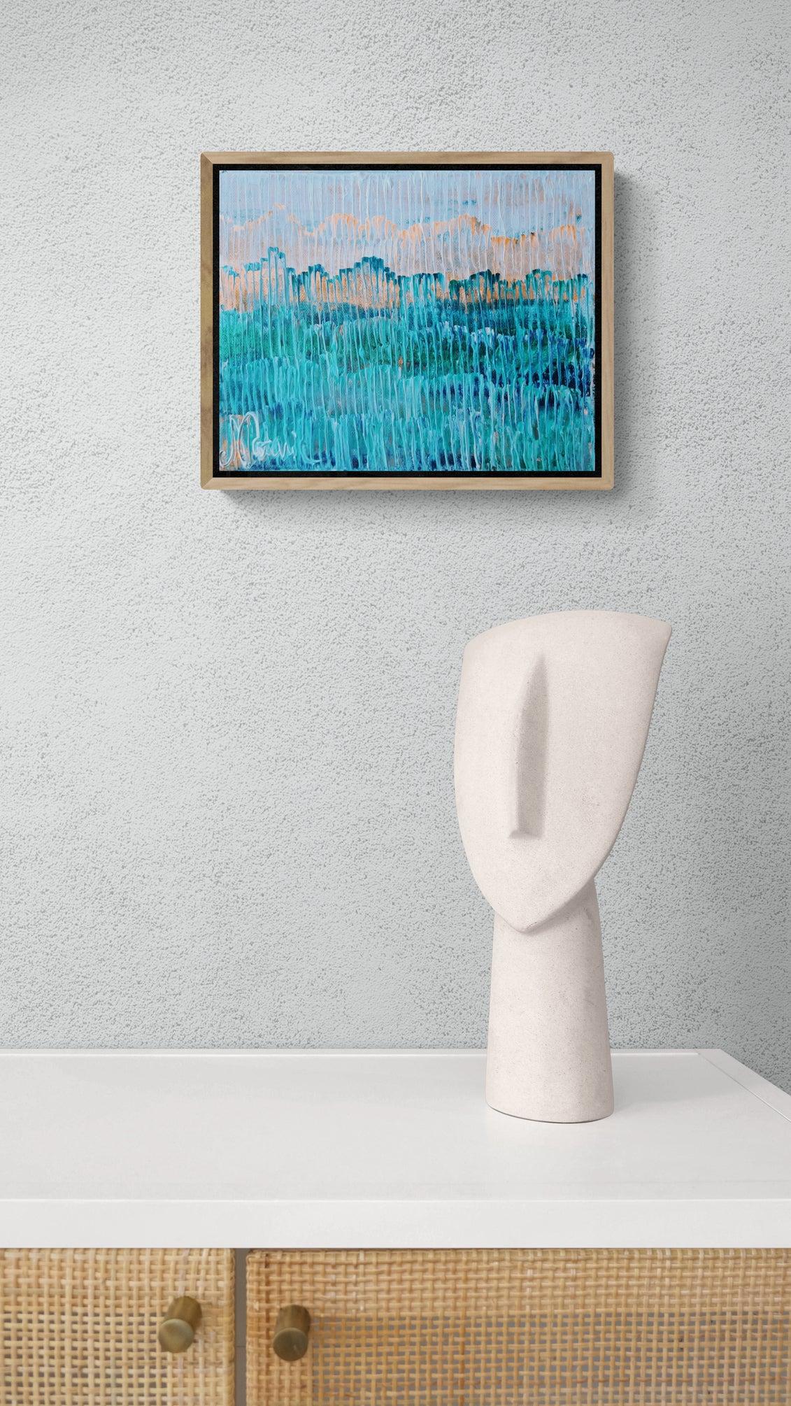 Blue Mirage captures the illusionary, shifting nature of perception — like a shimmer on the horizon where reality and imagination blend. Through soft blues and layered movement, the painting evokes mystery, depth and the calm allure of the unattainable, inviting viewers to lose themselves in its dreamlike space.