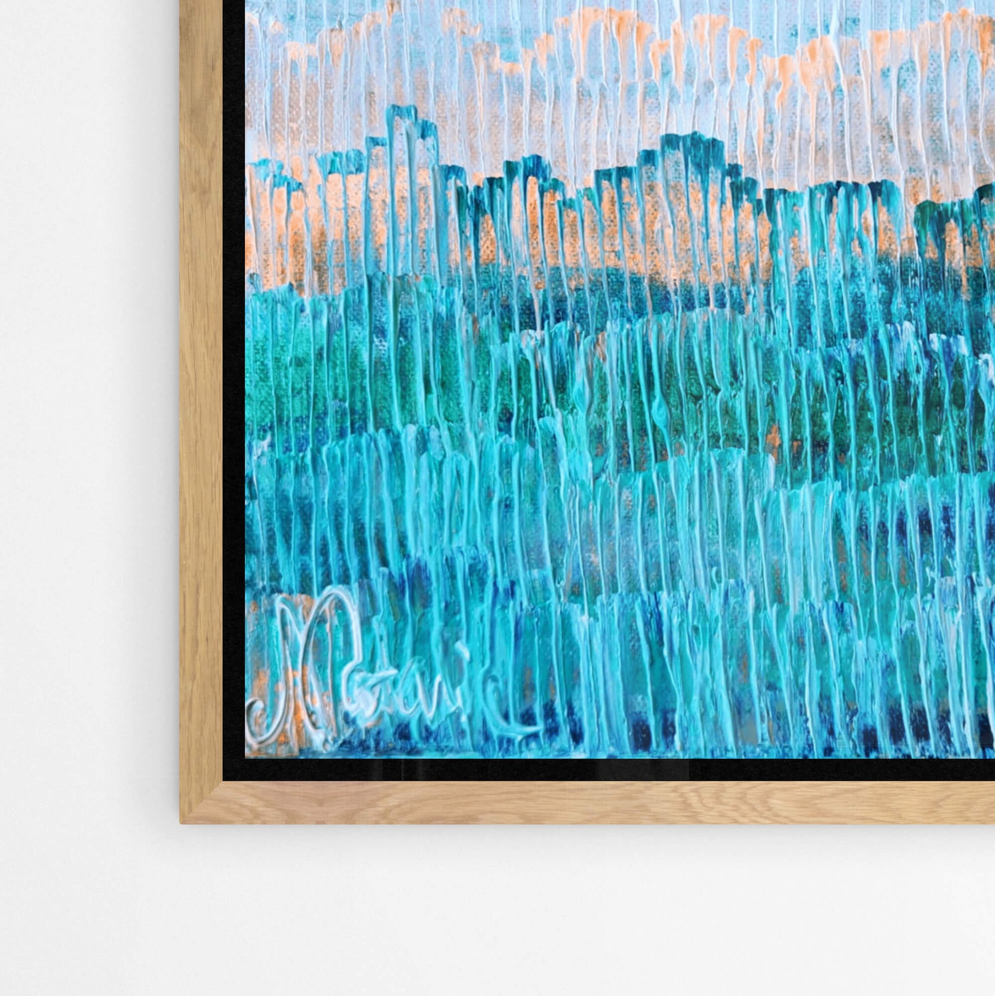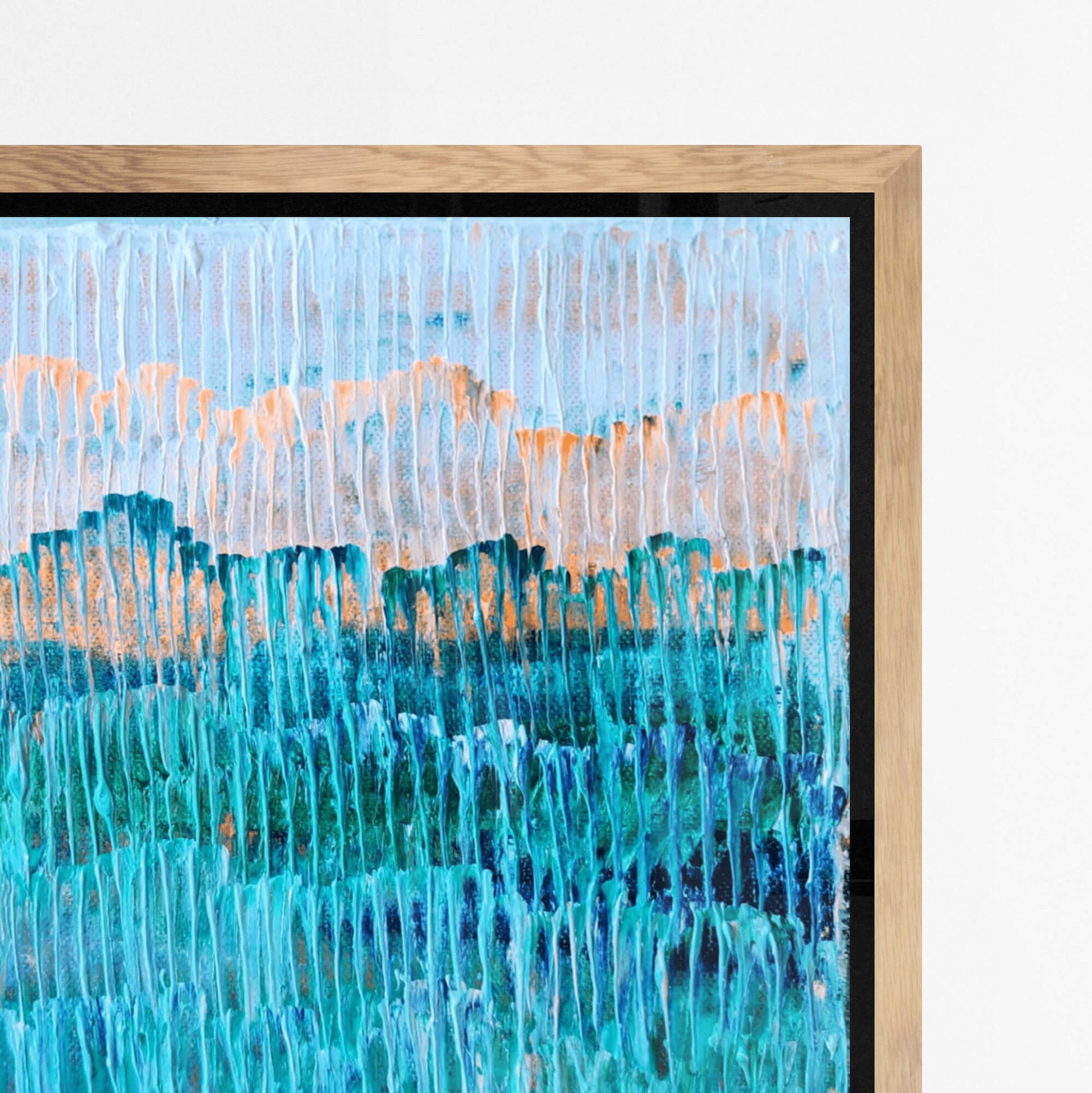Each frame is made from high-grade, sustainably sourced Australian timber. Designed to complement the work, not compete with it. Works are framed in either natural Tasmanian Oak, or painted white or black finishes.