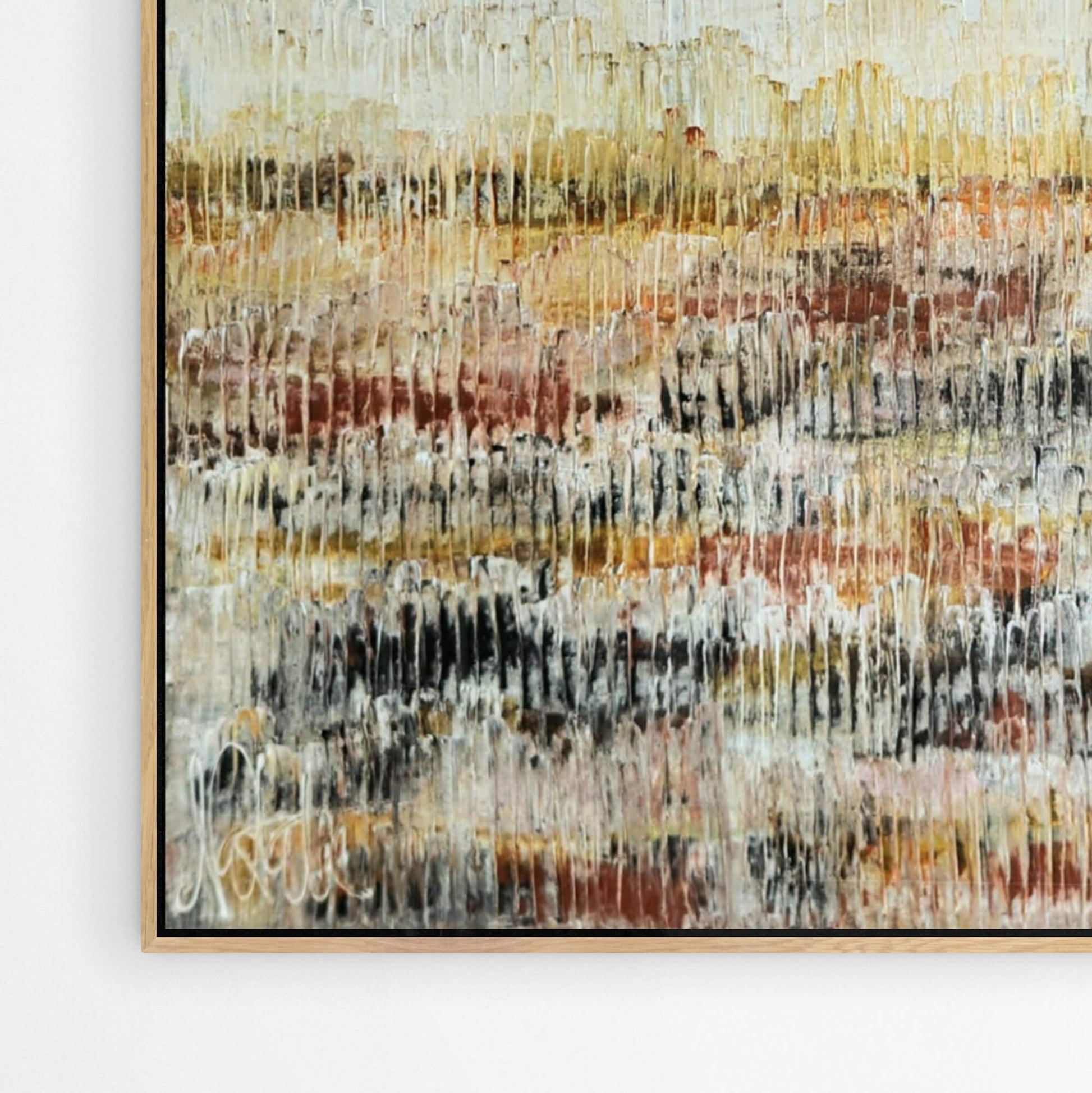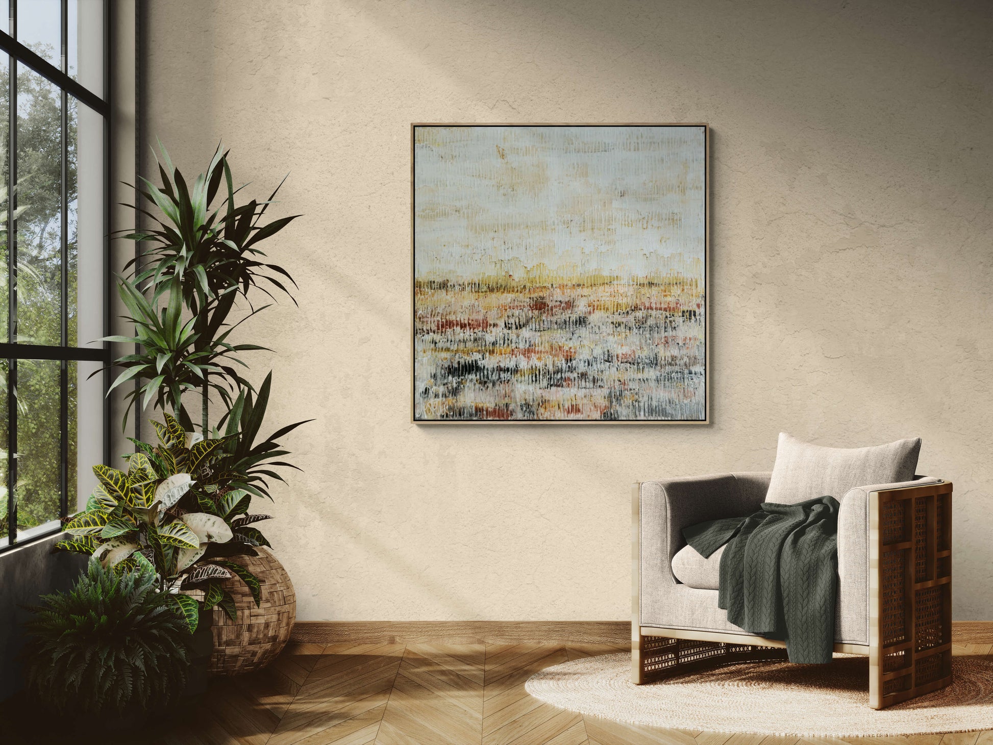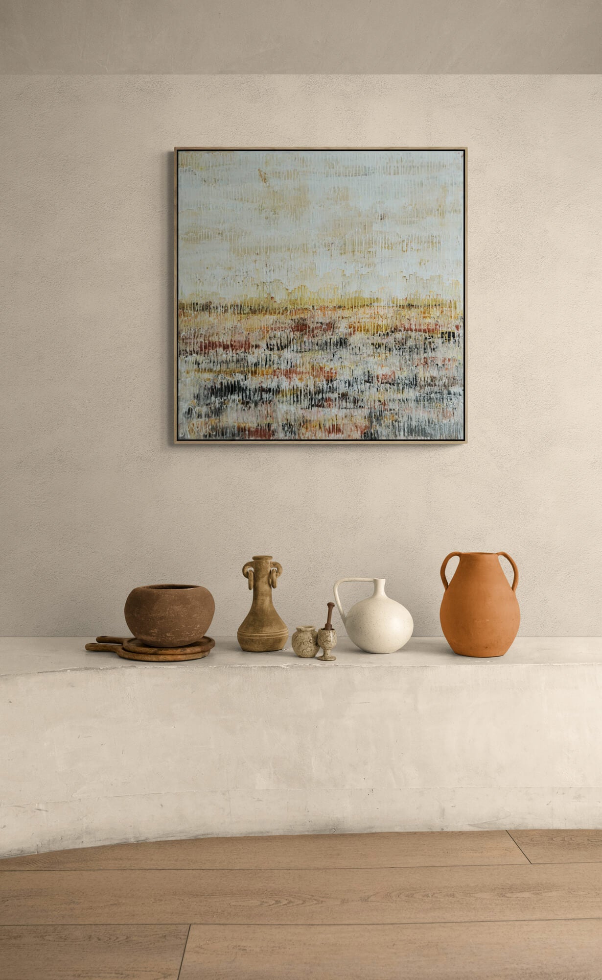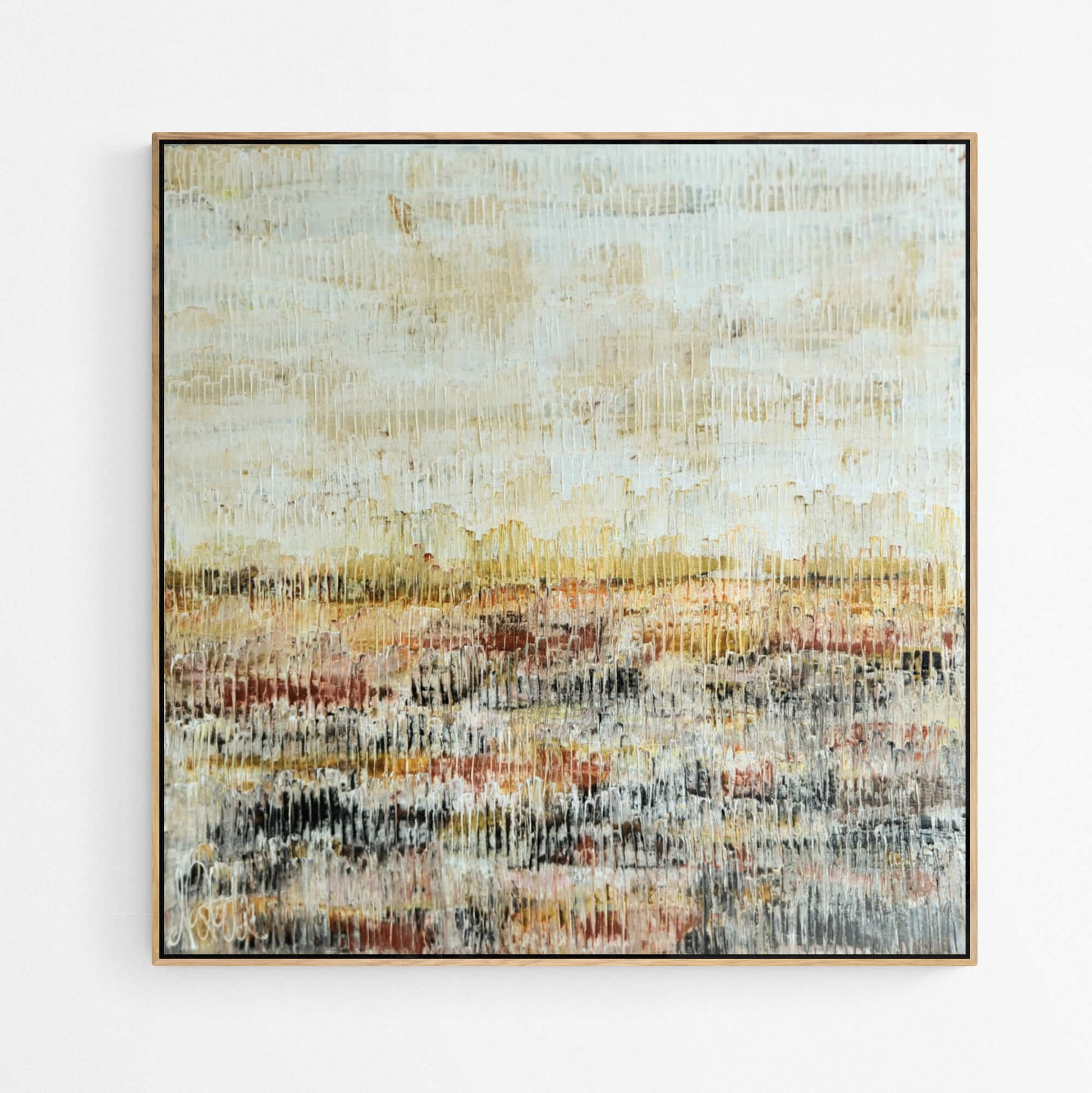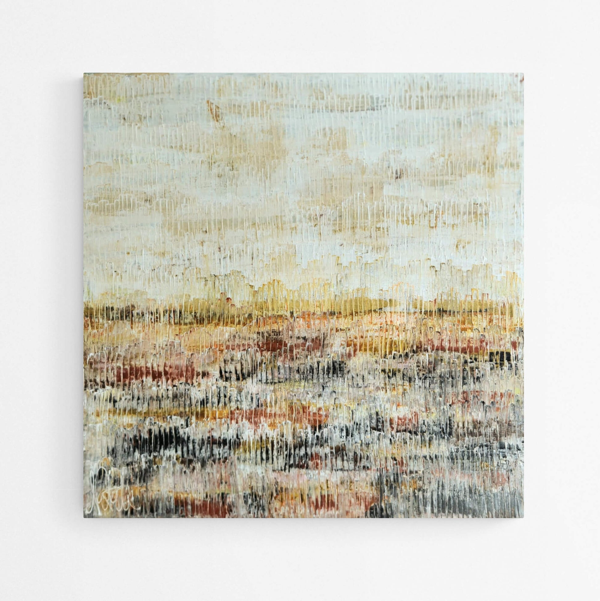 Dunes of Light evokes rolling landscapes of illumination — shifting, soft and endless, like sunlight caught on sand. Through layered tones and flowing movement, the painting captures the quiet poetry of nature’s shapes and the way light drifts across them, inviting viewers into a timeless space.