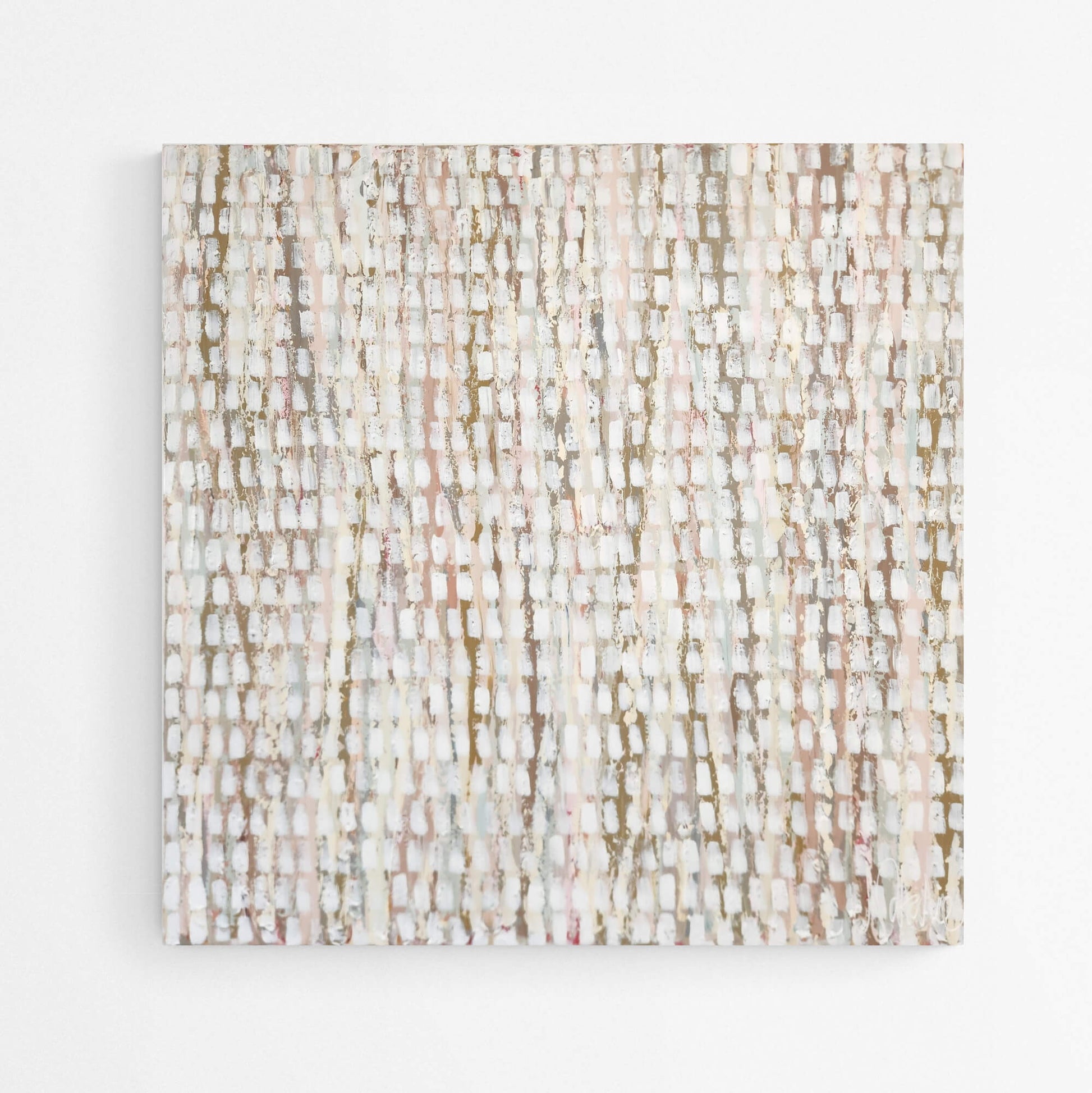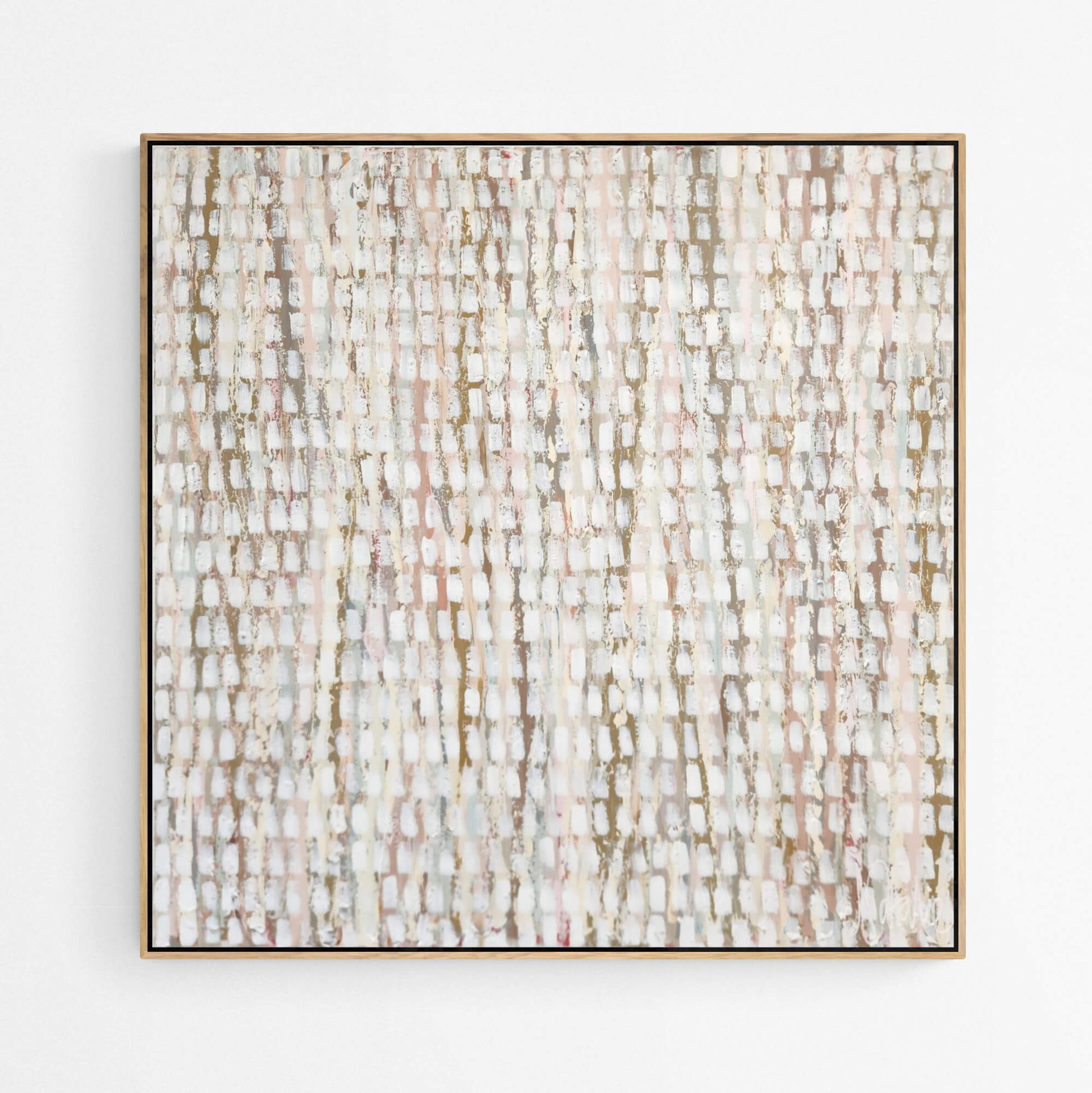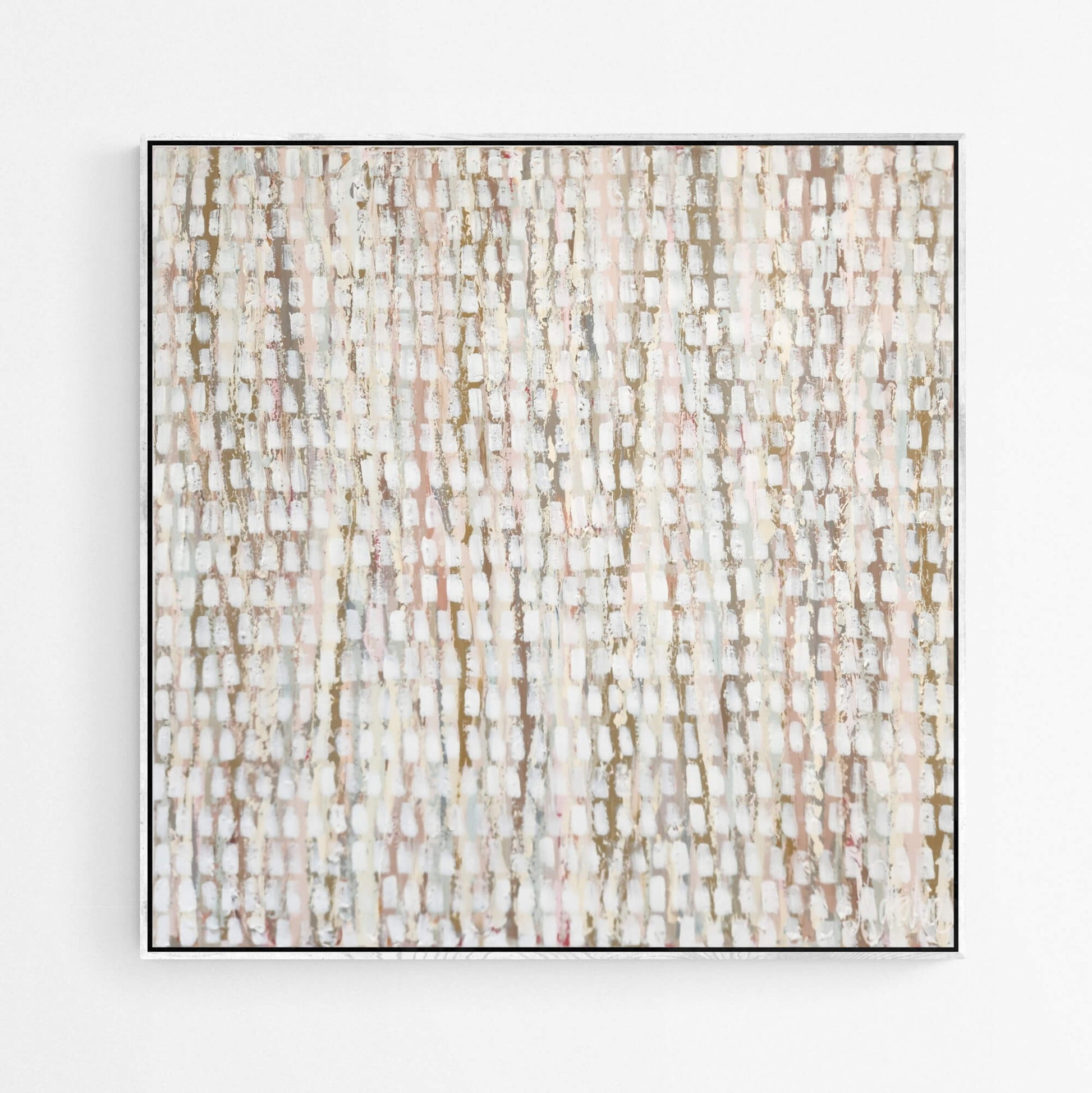 Fly Me to the Moon drifts through soft neutral tones, layered with delicate white lines that evoke movement, rhythm, and light. The gentle palette suggests calm and openness, while the flowing marks hint at dreams, connection, and the quiet pull toward something beyond.