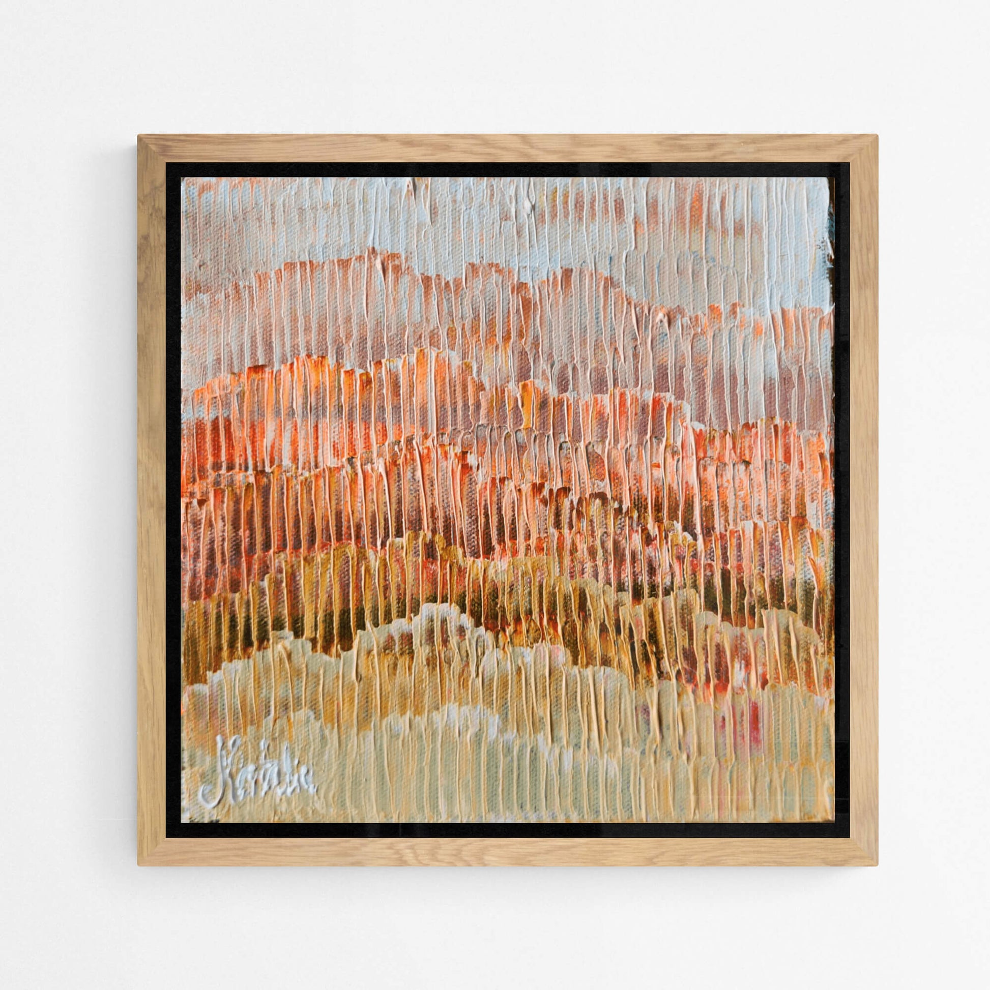 Each frame is made from high-grade, sustainably sourced Australian timber. Designed to complement the work, not compete with it. Works are framed in either natural Tasmanian Oak, or painted white or black finishes.