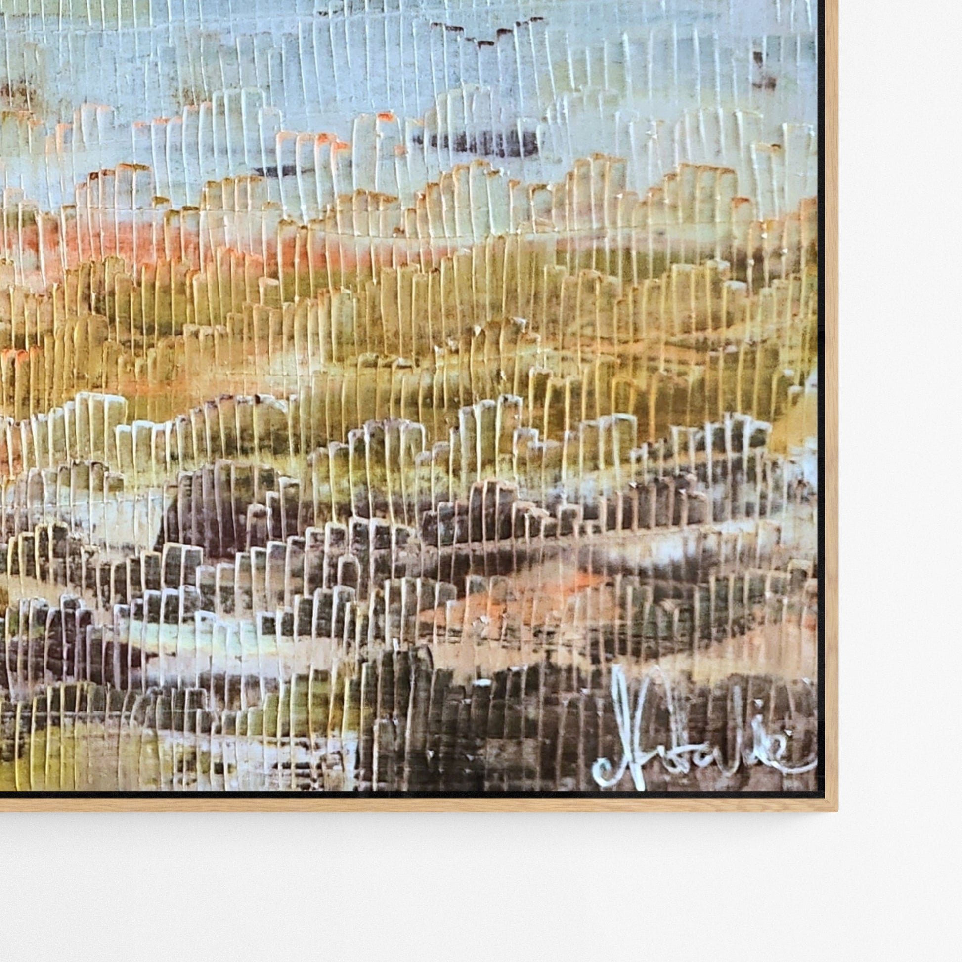Each frame is made from high-grade, sustainably sourced Australian timber. Designed to complement the work, not compete with it. Works are framed in either natural Tasmanian Oak, or painted white or black finishes.
