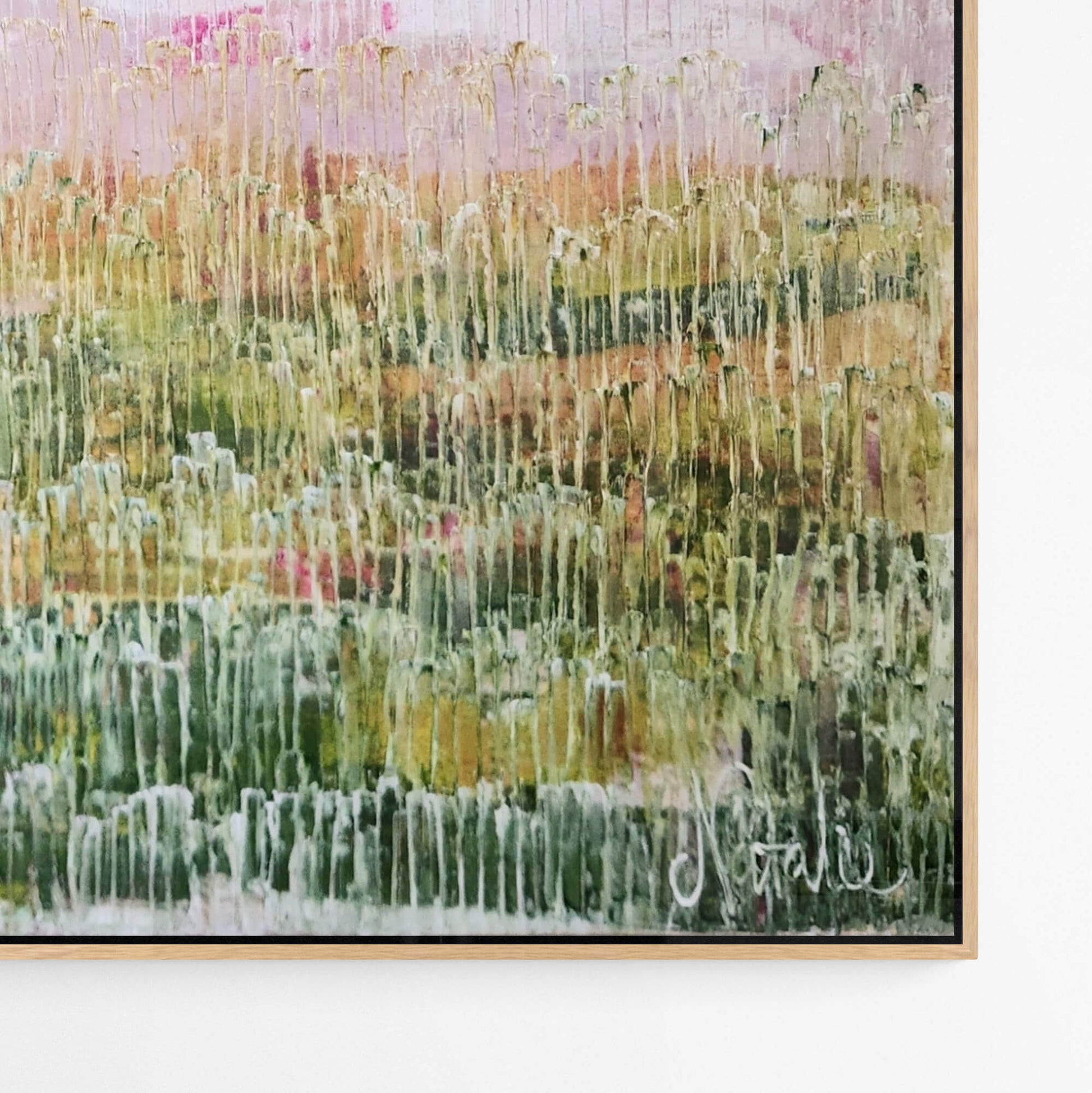 Each frame is made from high-grade, sustainably sourced Australian timber. Designed to complement the work, not compete with it. Works are framed in either natural Tasmanian Oak, or painted white or black finishes.