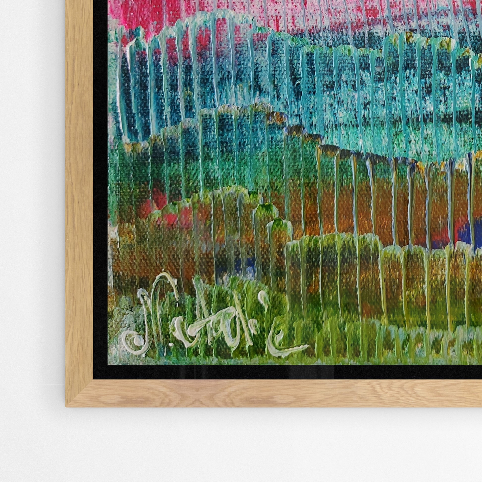Each frame is made from high-grade, sustainably sourced Australian timber. Designed to complement the work, not compete with it. Works are framed in either natural Tasmanian Oak, or painted white or black finishes.