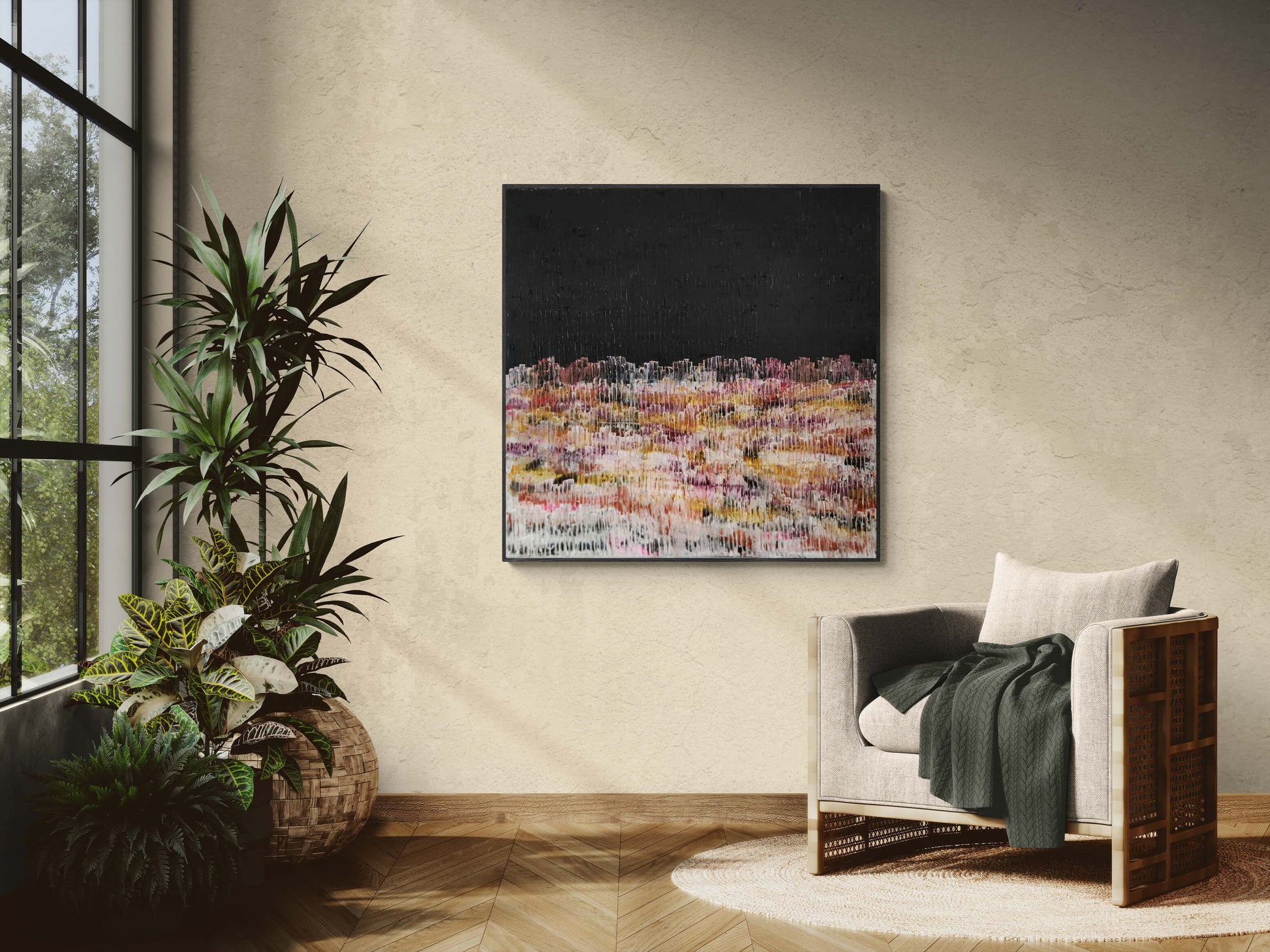 Moonless captures the stillness and mystery of a night without light — a space where darkness becomes its own kind of beauty. The painting evokes introspection, surrender, and the quiet strength found in absence.