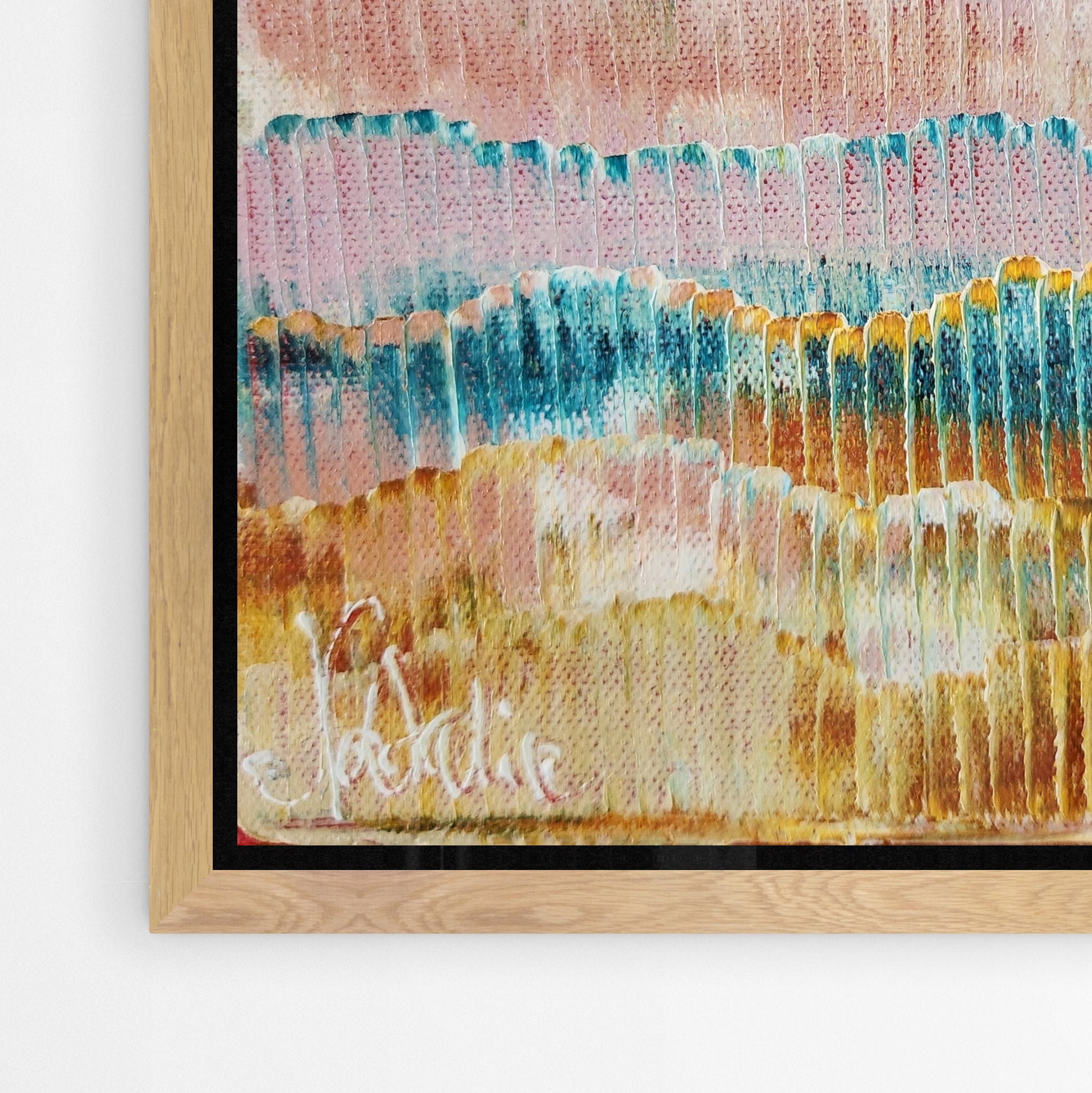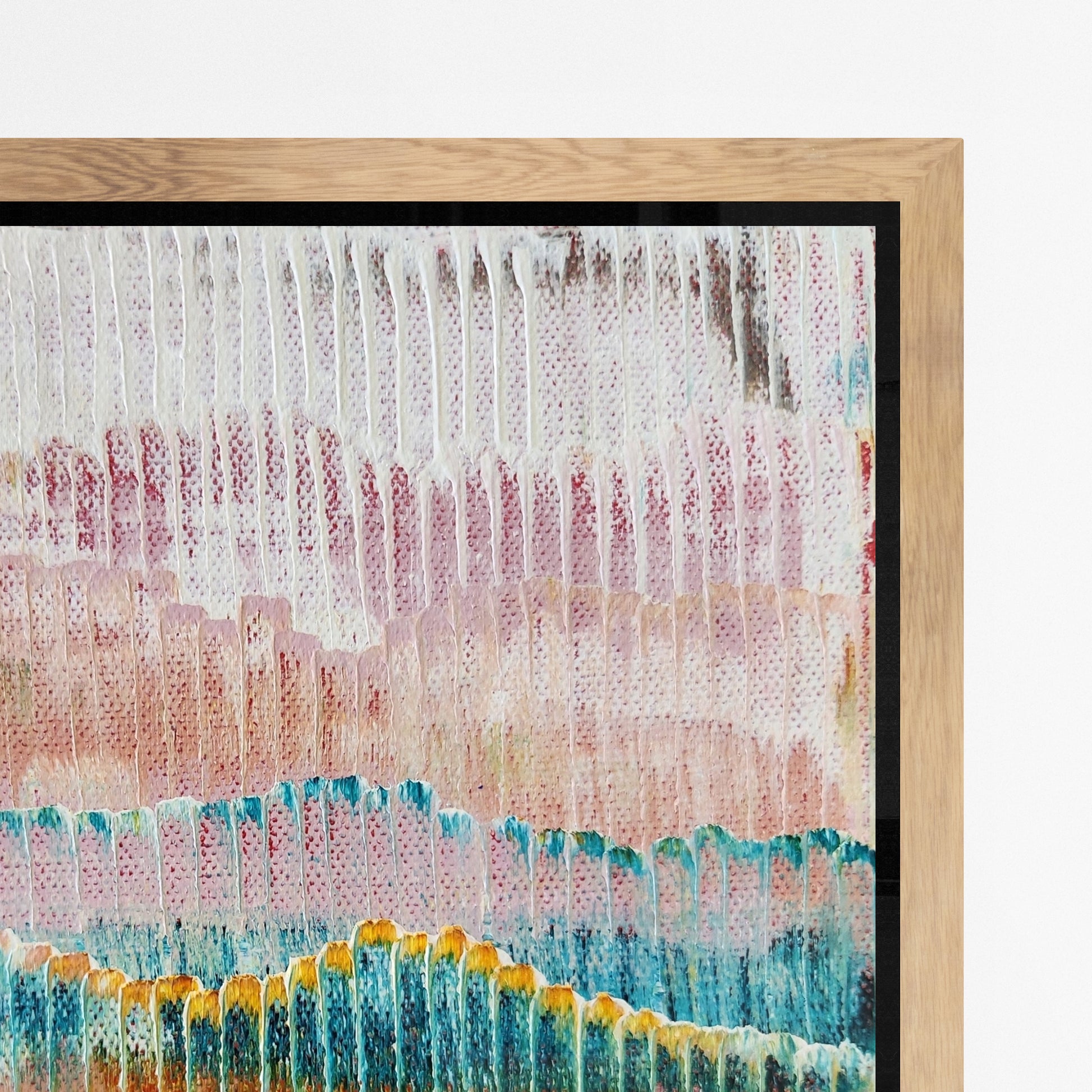 Each frame is made from high-grade, sustainably sourced Australian timber. Designed to complement the work, not compete with it. Works are framed in either natural Tasmanian Oak, or painted white or black finishes.