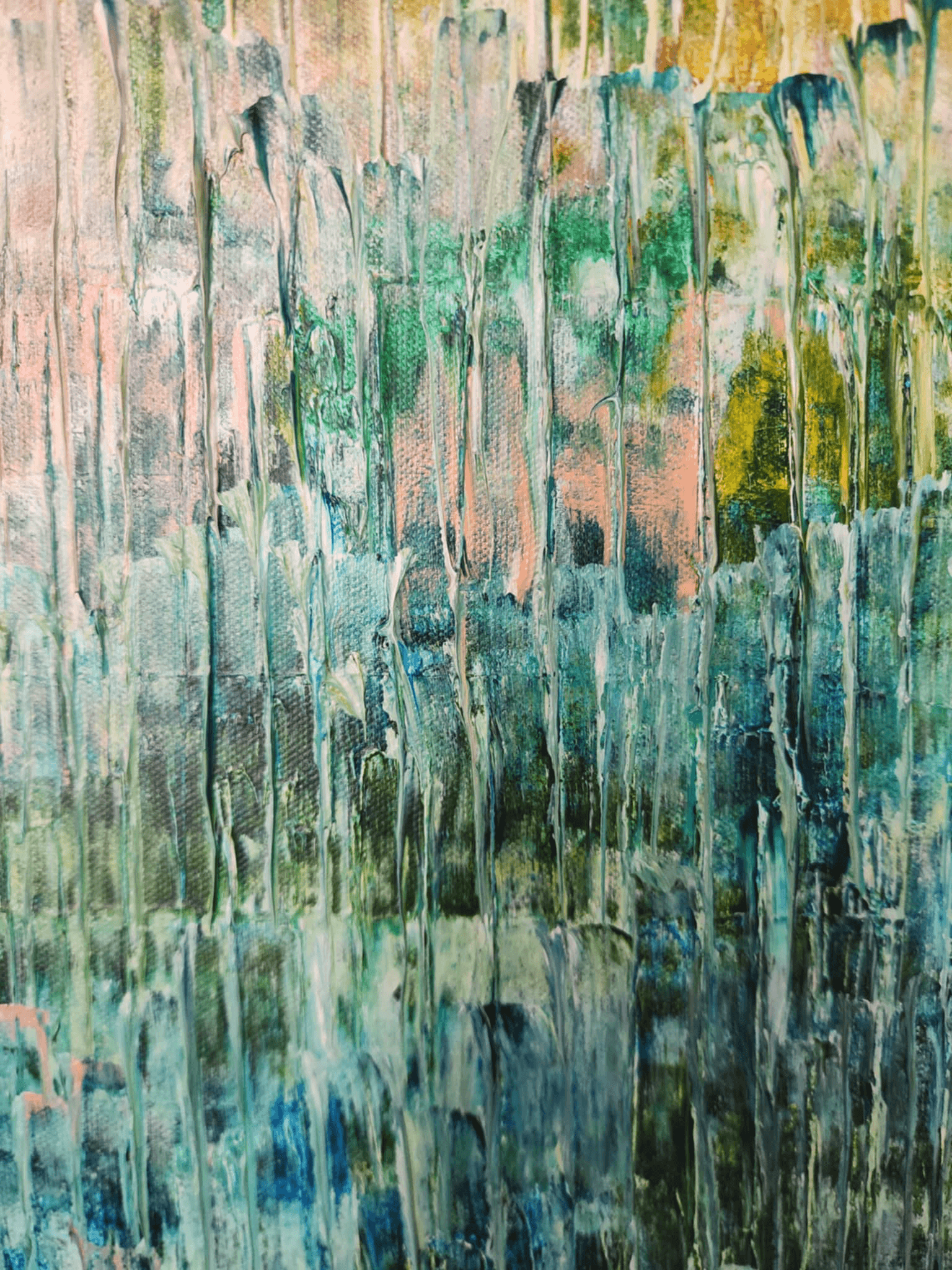 Tranquil Frequencies explores the soothing vibrations that move through stillness — the subtle energies of peace, balance, and harmony. Through layered tones and rhythmic movement, the painting evokes a meditative calm, inviting the viewer to tune into serenity’s quiet pulse.