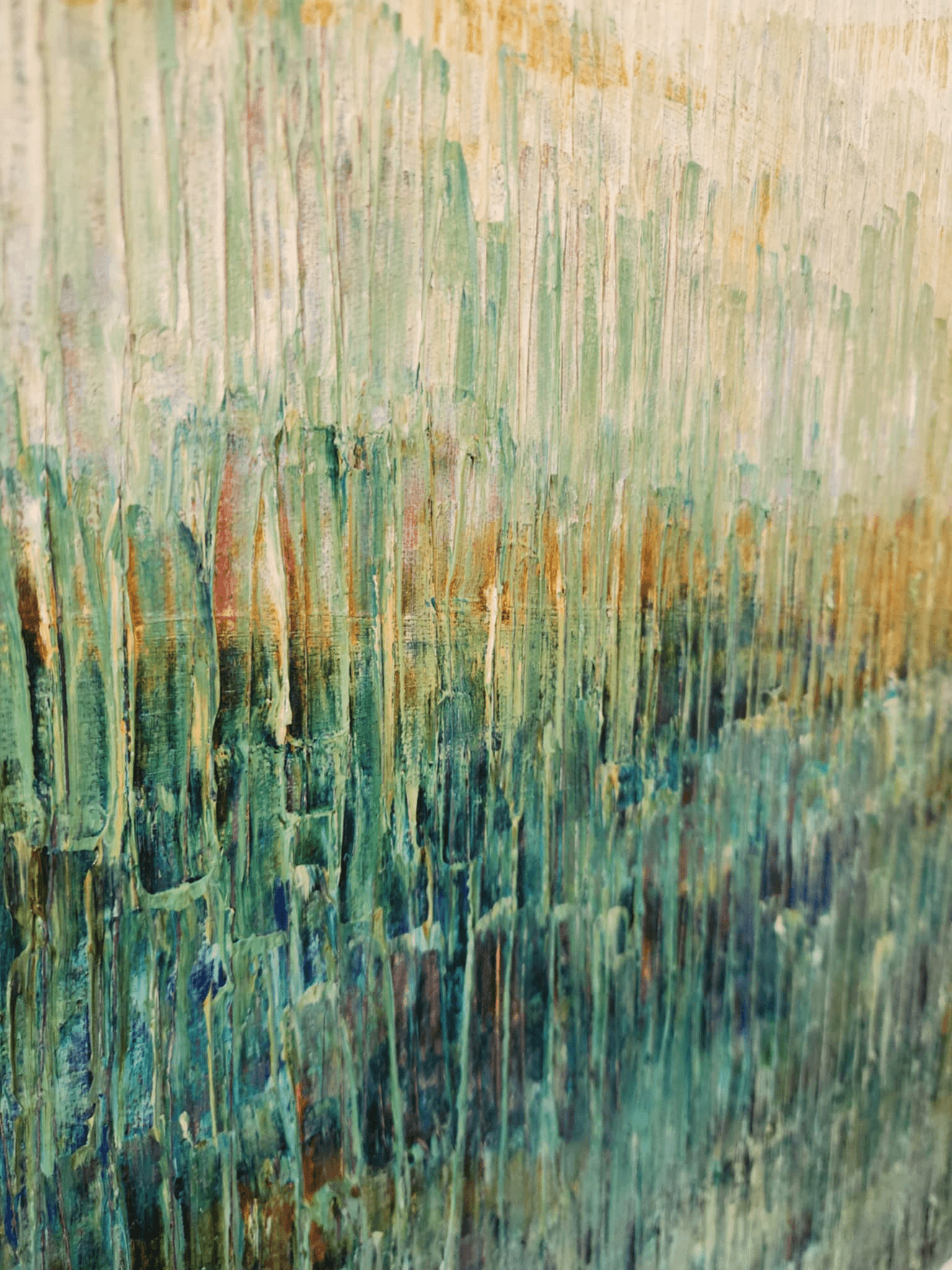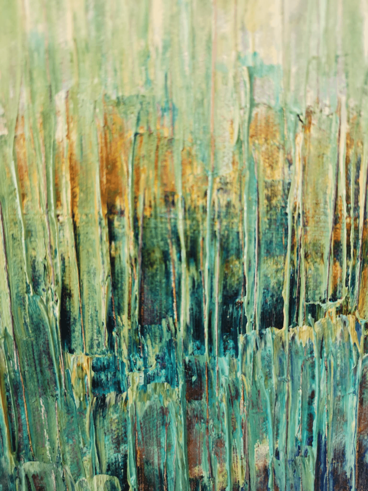 Whispers Beneath invites the viewer into the quiet spaces below the surface — where energy moves softly, unseen yet deeply felt. Through layers of blue, green, and sienna, the painting evokes mystery and depth, suggesting the gentle murmurs of spirit and nature that exist beyond words.